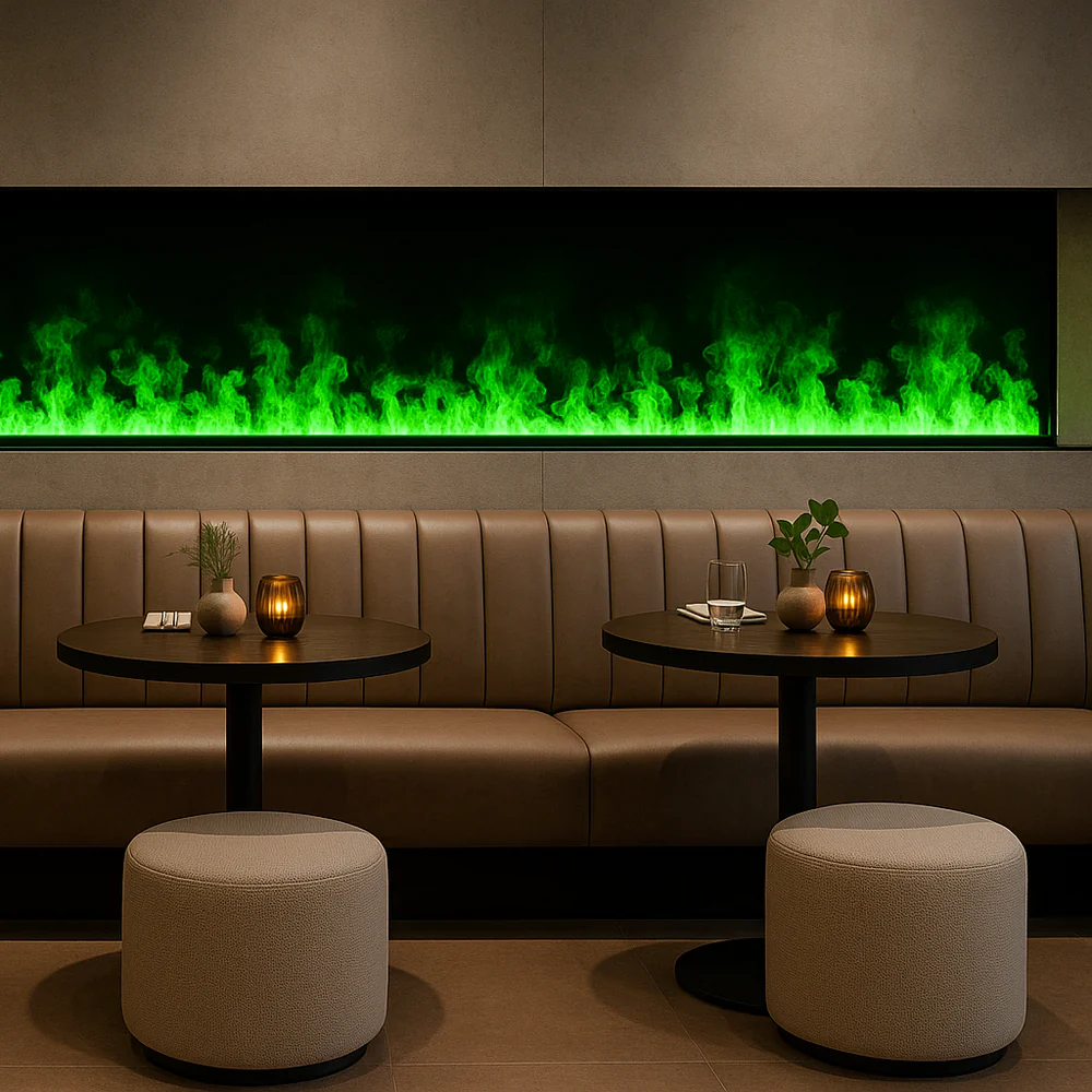 Afire-höyrytakan patentoitu kaksirivinen LED-valaistus ja vesihöyry luovat erittäin realistisen takkaefektin. Kaikki nauttivat elävän tulen ääressä istumisesta, mikä antaa meille loistavan tilaisuuden rentoutua, olipa kyseessä ravintola, kylpylä tai olohuone. Höyrytakka sopii käytettäväksi joko itsenäisenä tai, kuten suositellaan, integroituna yksikkönä.